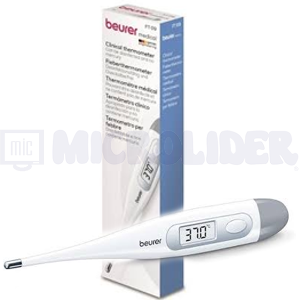 El termómetro digital Beurer FT 09 cuenta con una pantalla LCD que facilita la visualización de los resultados obtenidos. El termómetro clínico cuenta con la tecnología de medición por contacto es fácil de usar y resistente al agua. Además, cuenta con indicador de batería baja y apagado automático.